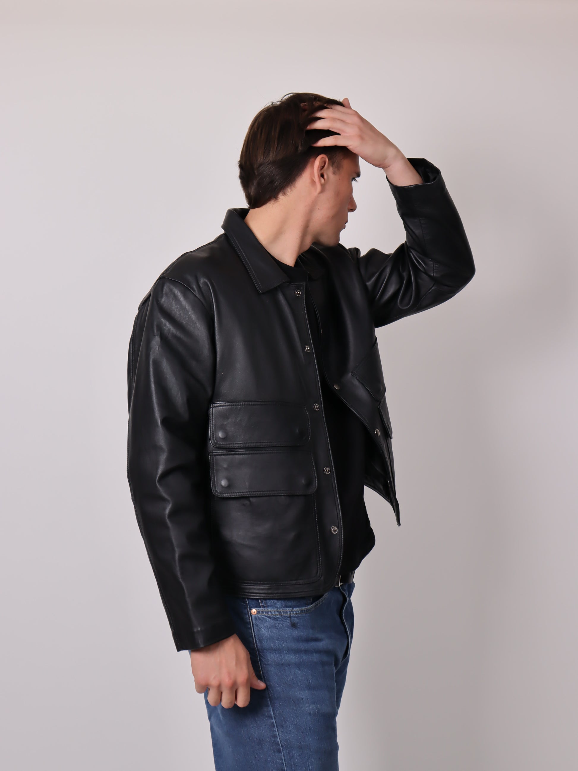 Un diseño atemporal que combina perfectamente con cualquier outfit. Hecha con piel premium, esta chamarra ofrece un ajuste cómodo y un estilo sofisticado. Sus detalles en broches metálicos y bolsillos frontales le dan un toque práctico y moderno. Ideal para quienes buscan elegancia con un aire rebelde.