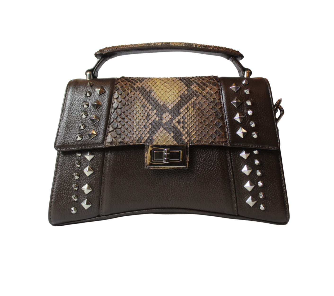 Descubre la elegancia y sofisticación del bolso Esmeralda, una pieza única hecha en piel con detalles en piel de pitón que le dan un toque exclusivo. Perfecto para realzar cualquier outfit con estilo y distinción. ¡No te lo pierdas!