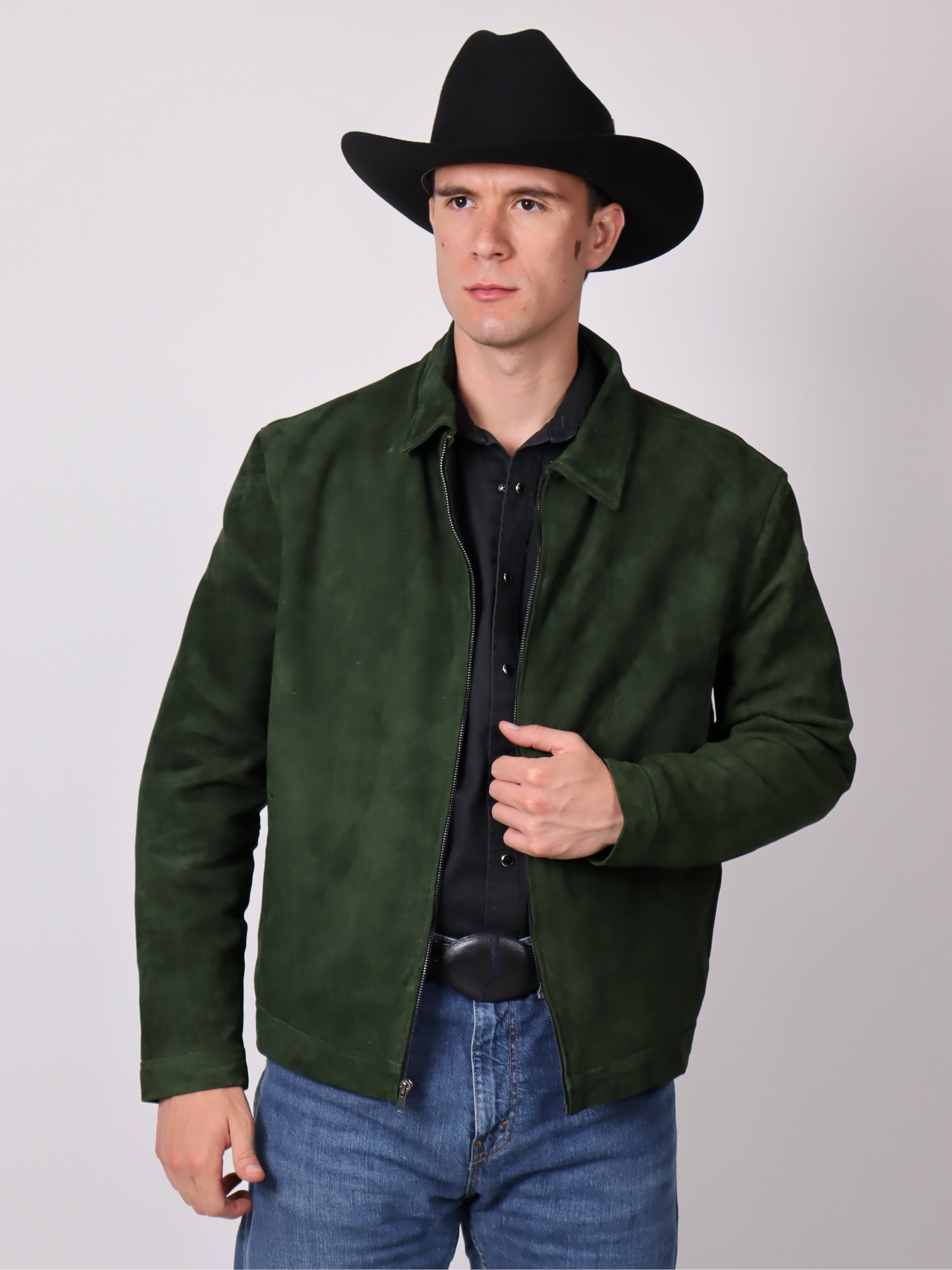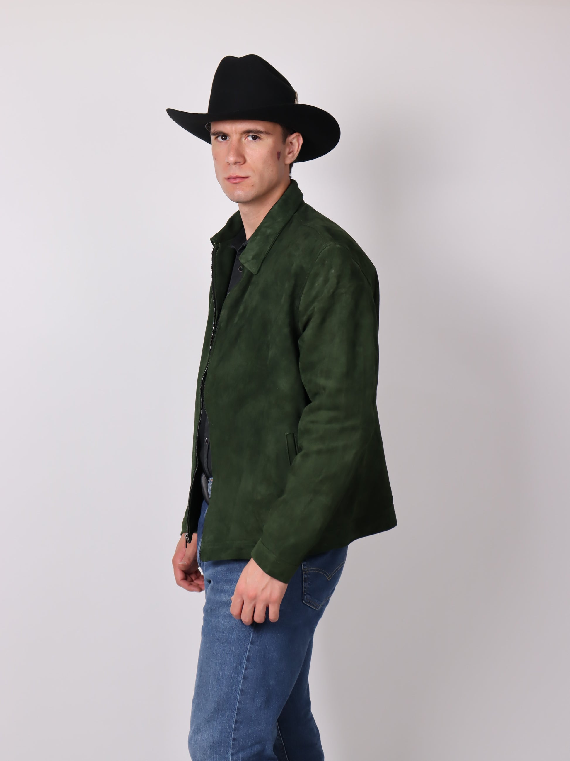 Estilo rudo, diseño atemporal. La chamarra Holanda en piel tipo nobuck color verde olivo es el equilibrio perfecto entre elegancia y actitud.