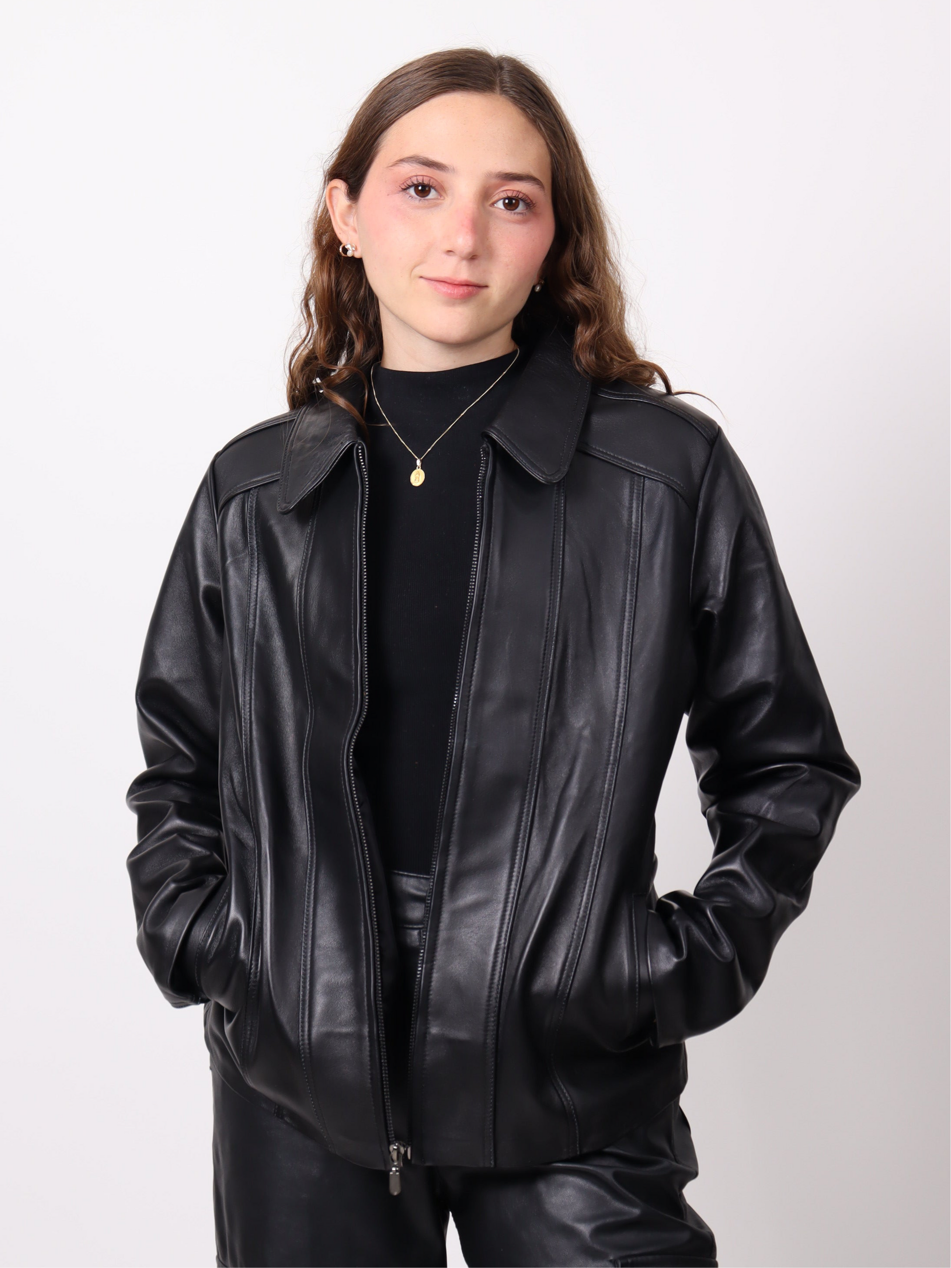 Esta chamarra de borrego negra para dama combina estilo, confort y calidez en una prenda ideal para el invierno. Confeccionada en material sintético de alta calidad con acabado en piel, su interior forrado de borrego suave te brinda una sensación térmica inigualable, perfecta para los días fríos.