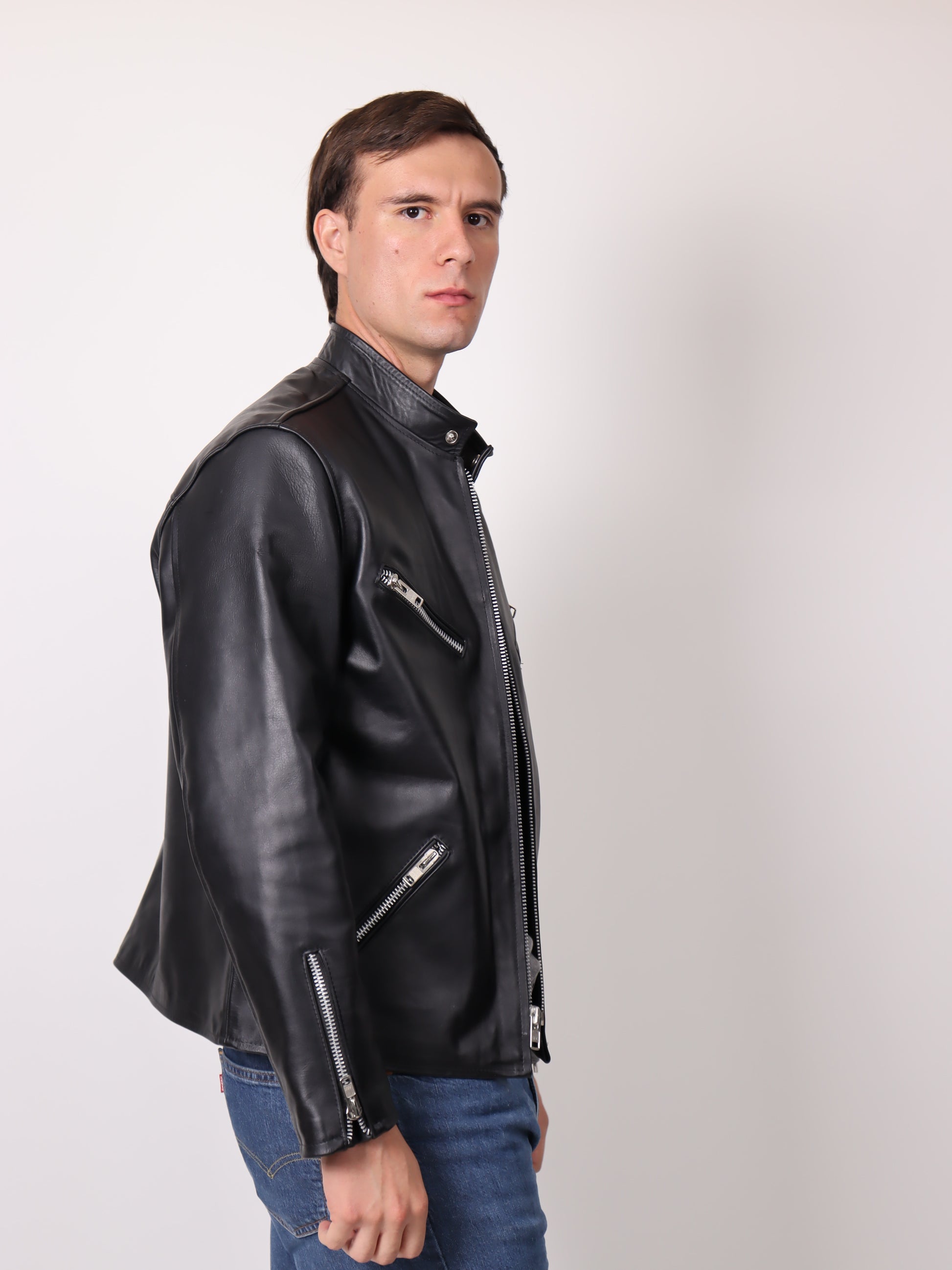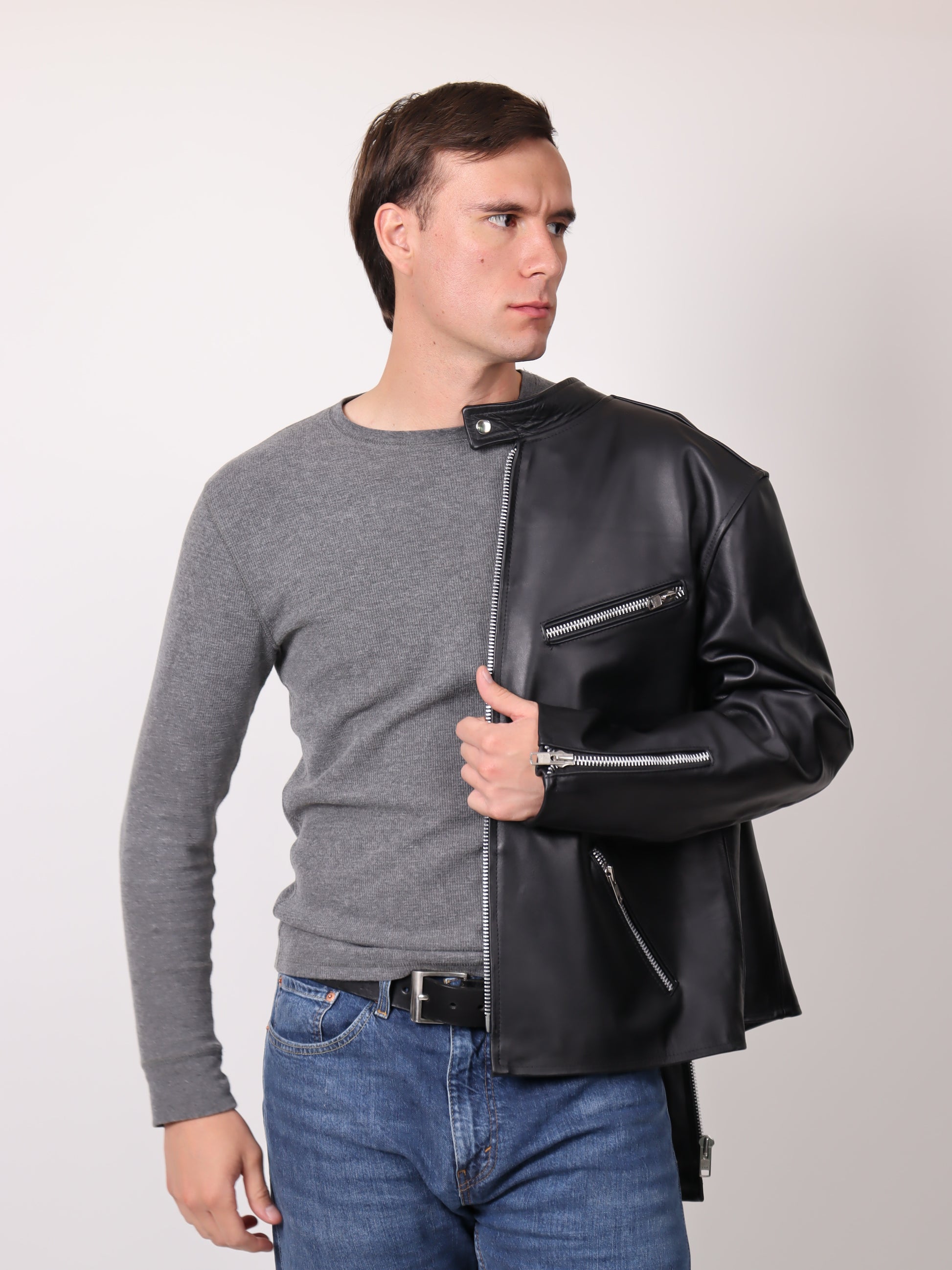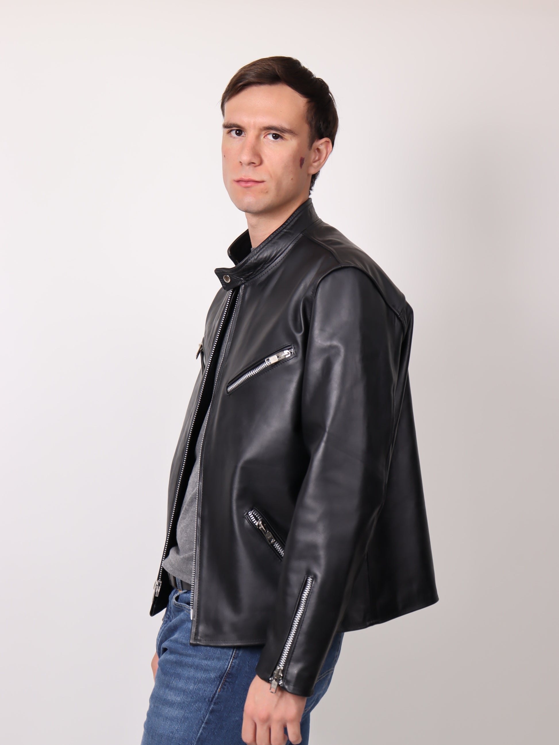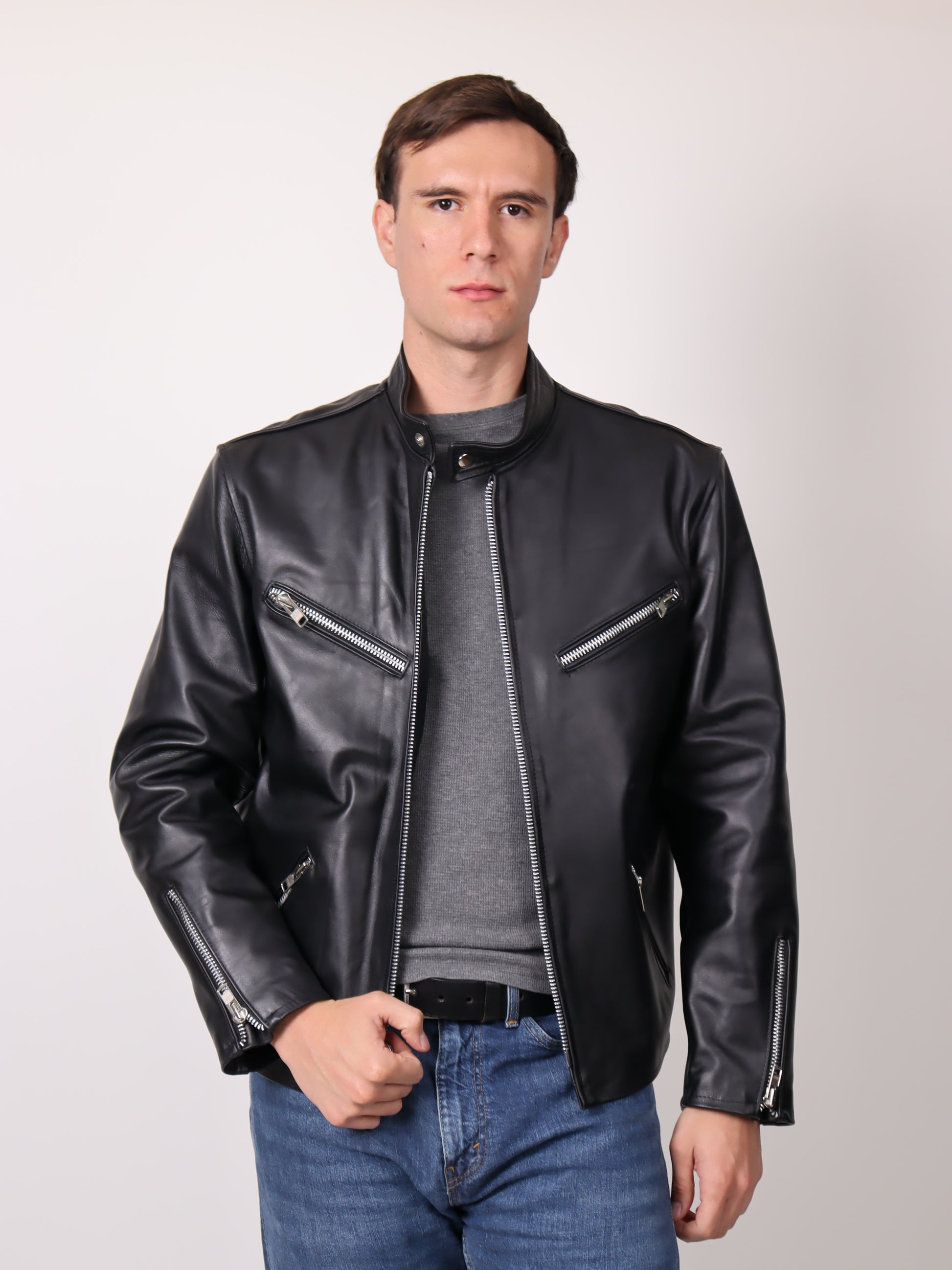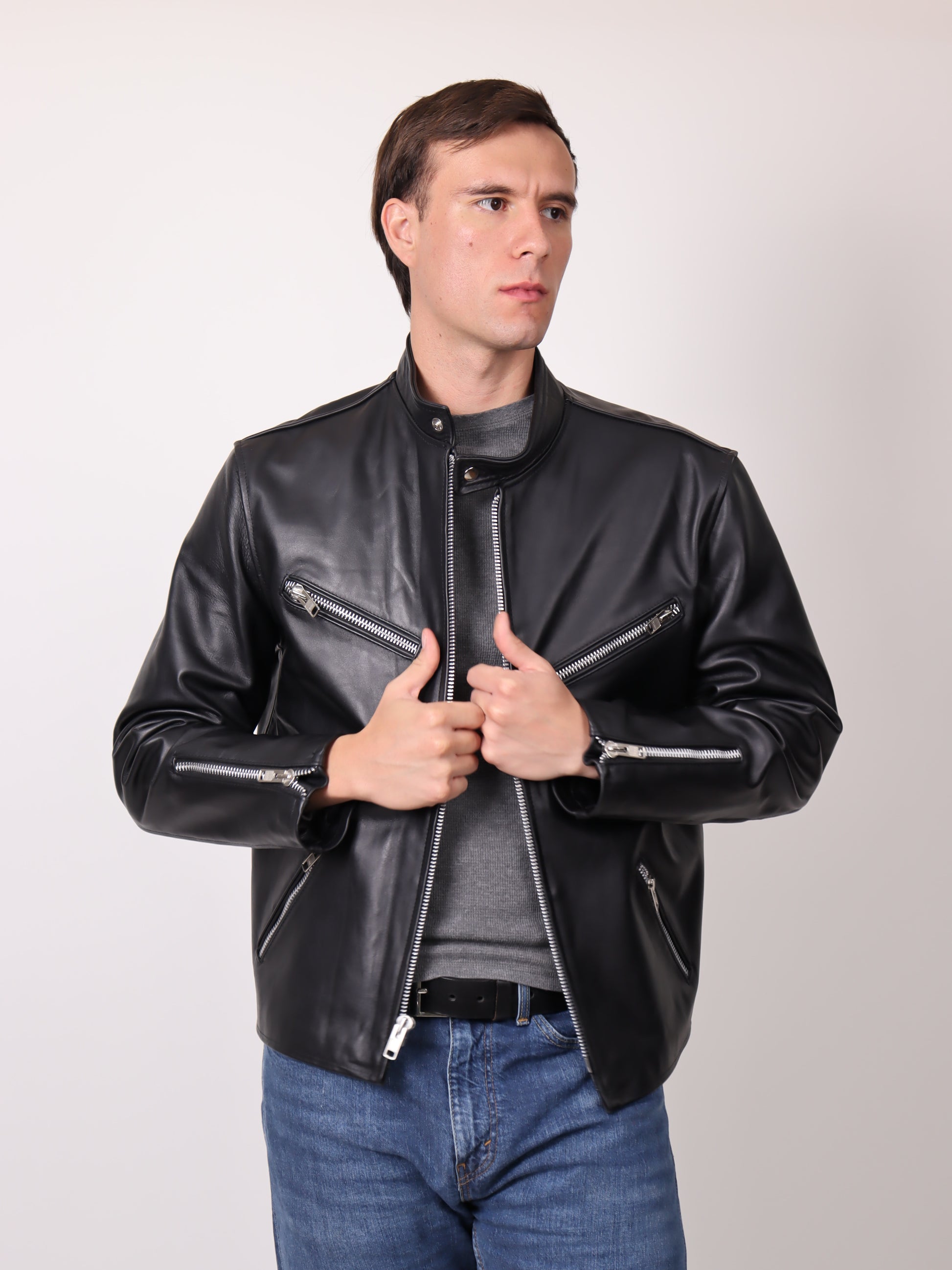 Una pieza imprescindible. Esta chamarra está confeccionada en piel de ternera 100% genuina, reconocida por su suavidad, resistencia y durabilidad. Su diseño tipo biker incorpora un corte slim fit que se adapta perfectamente al cuerpo, destacando tu estilo sin perder comodidad.