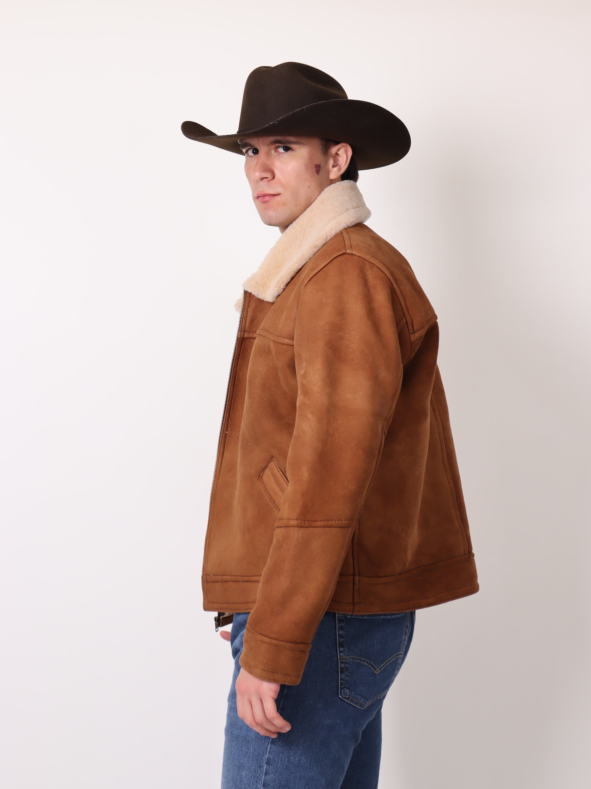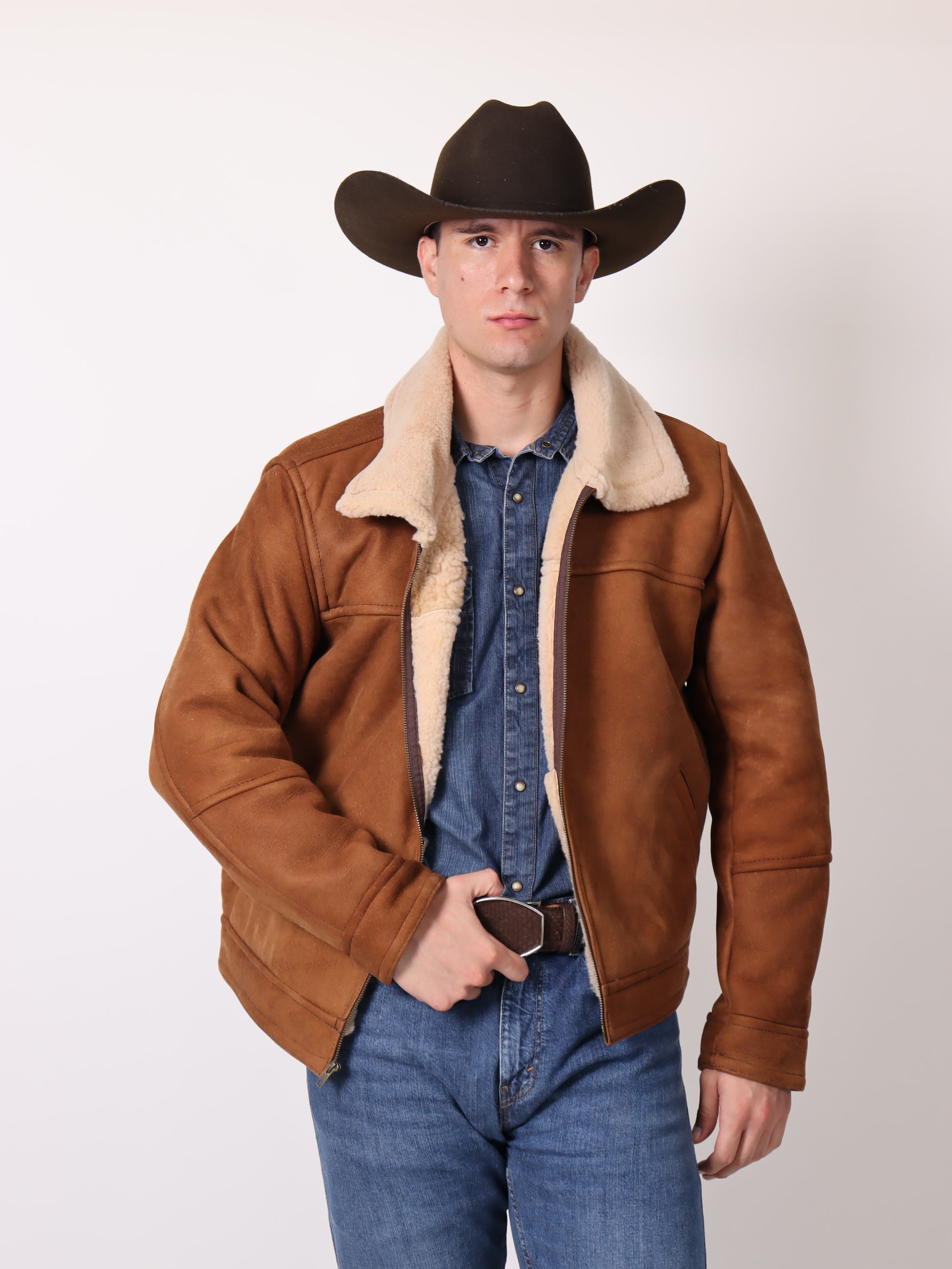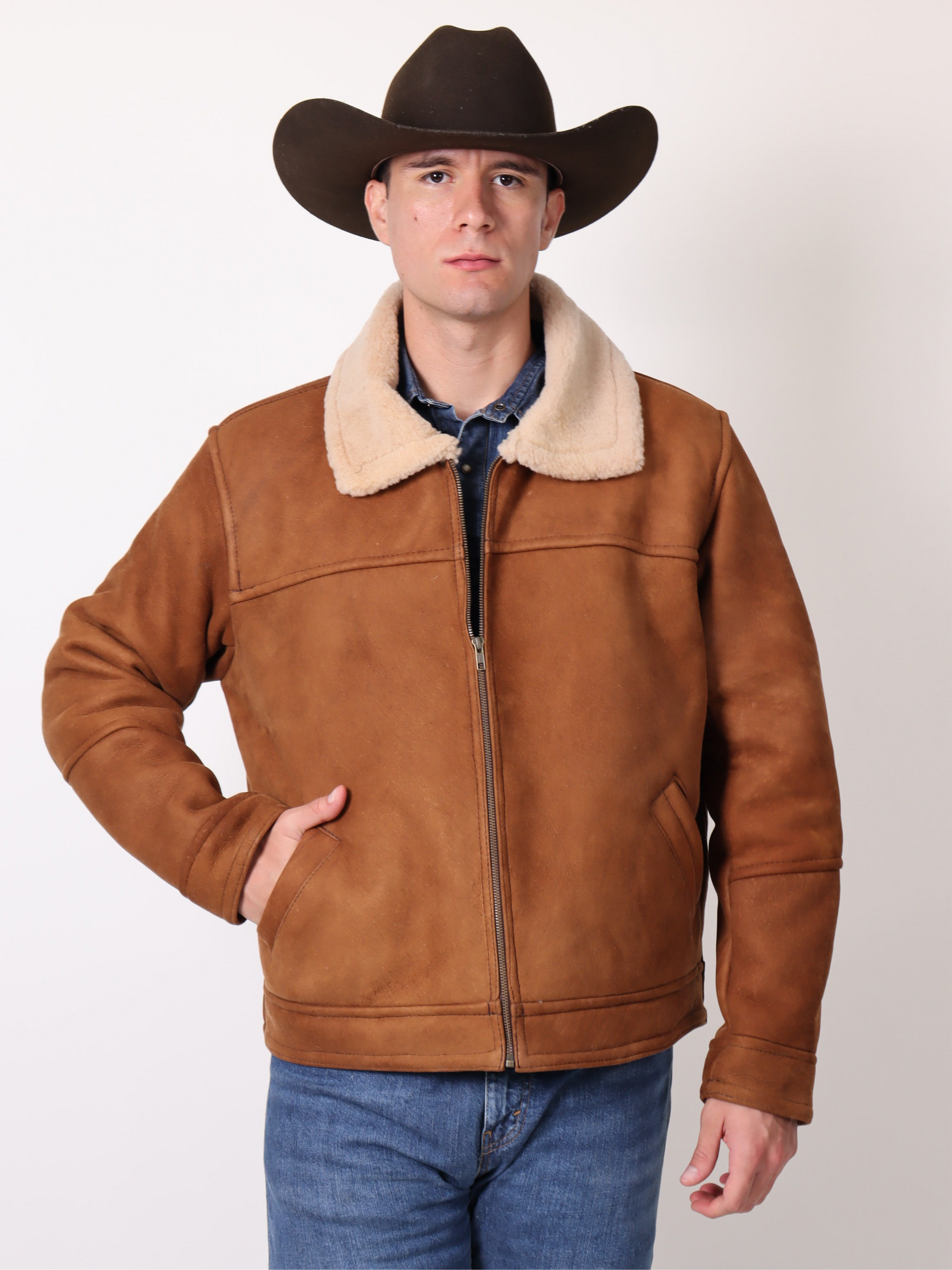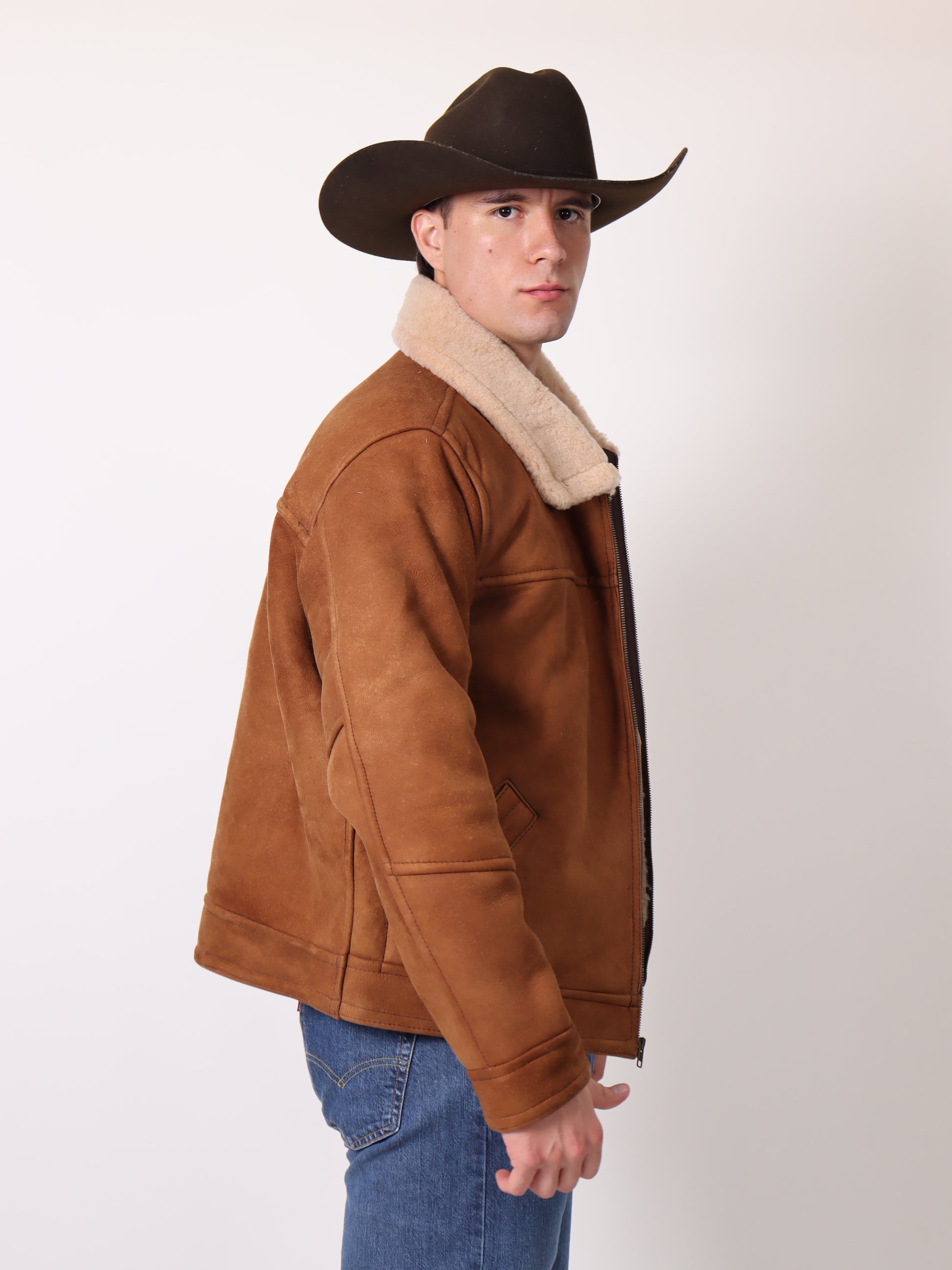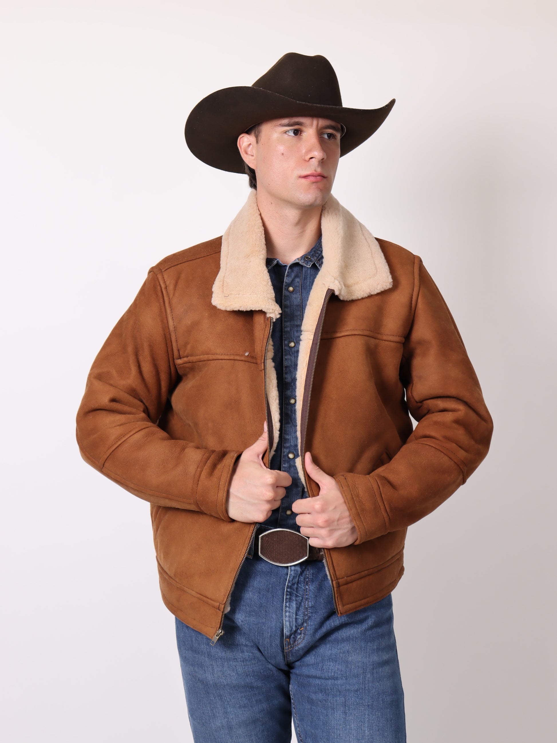 Chamarra modelo montana con cierre un clasico atemporal elaborado en piel de lana natural, acabo externo tipo gamuza e interior de lana. |