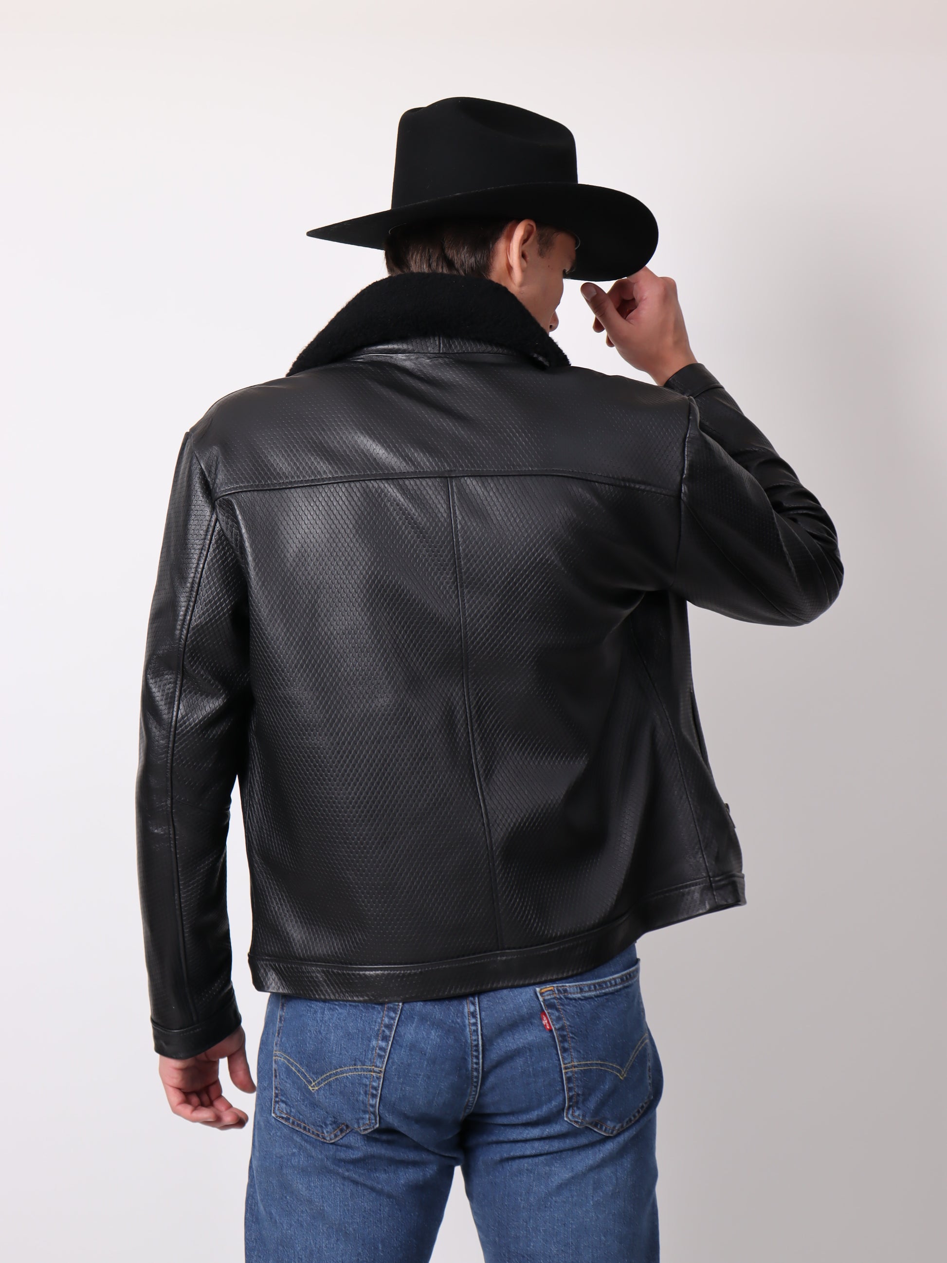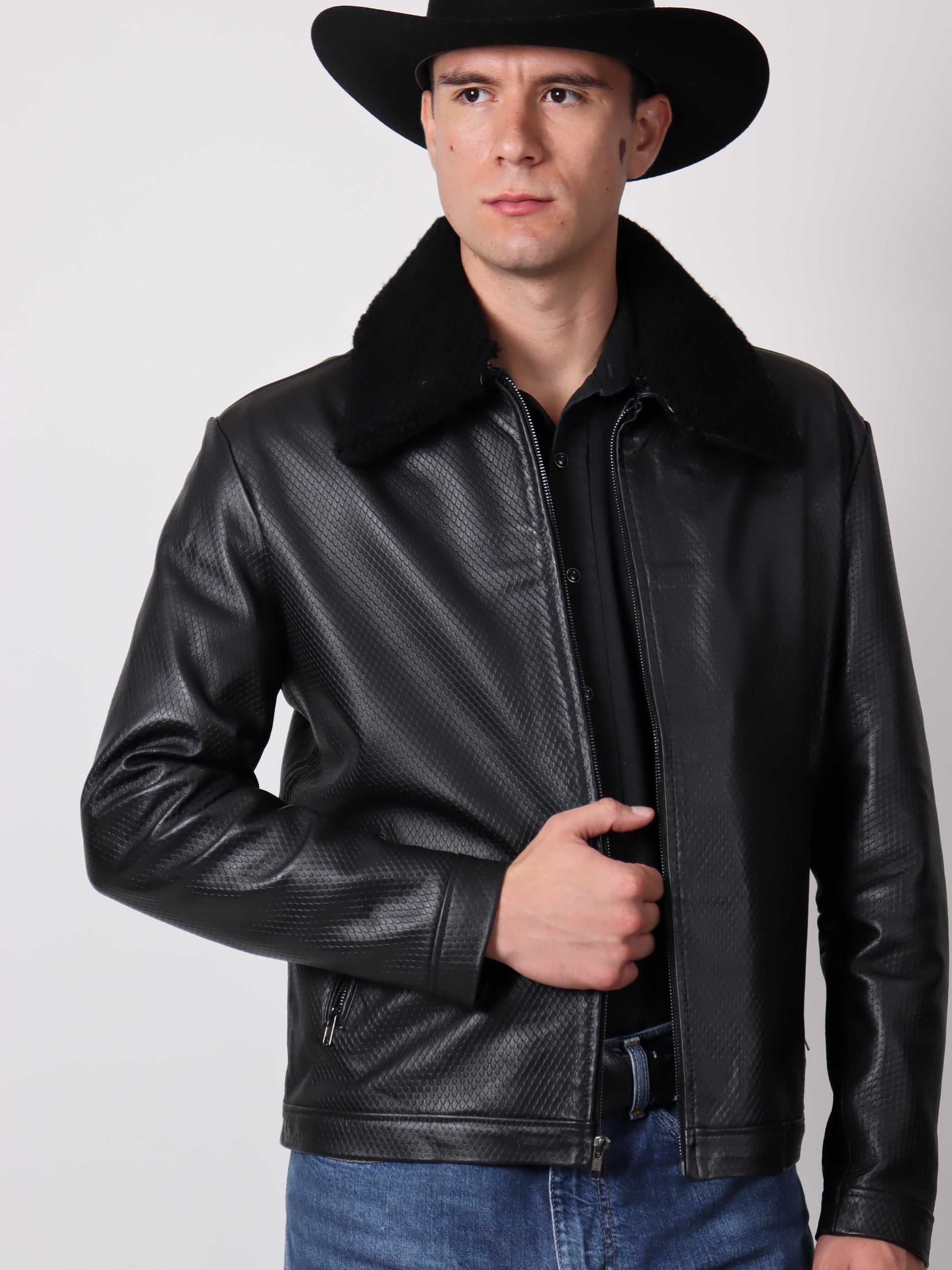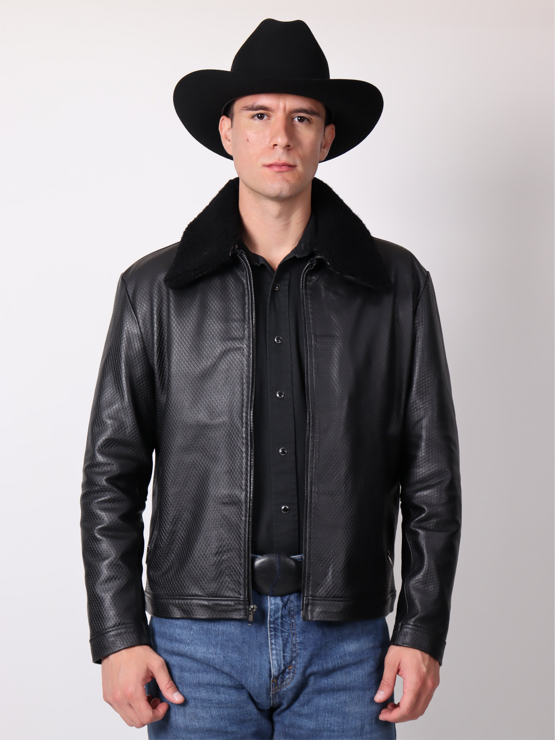 Chamarra Grabada con Cuello de Borrega Desmontable