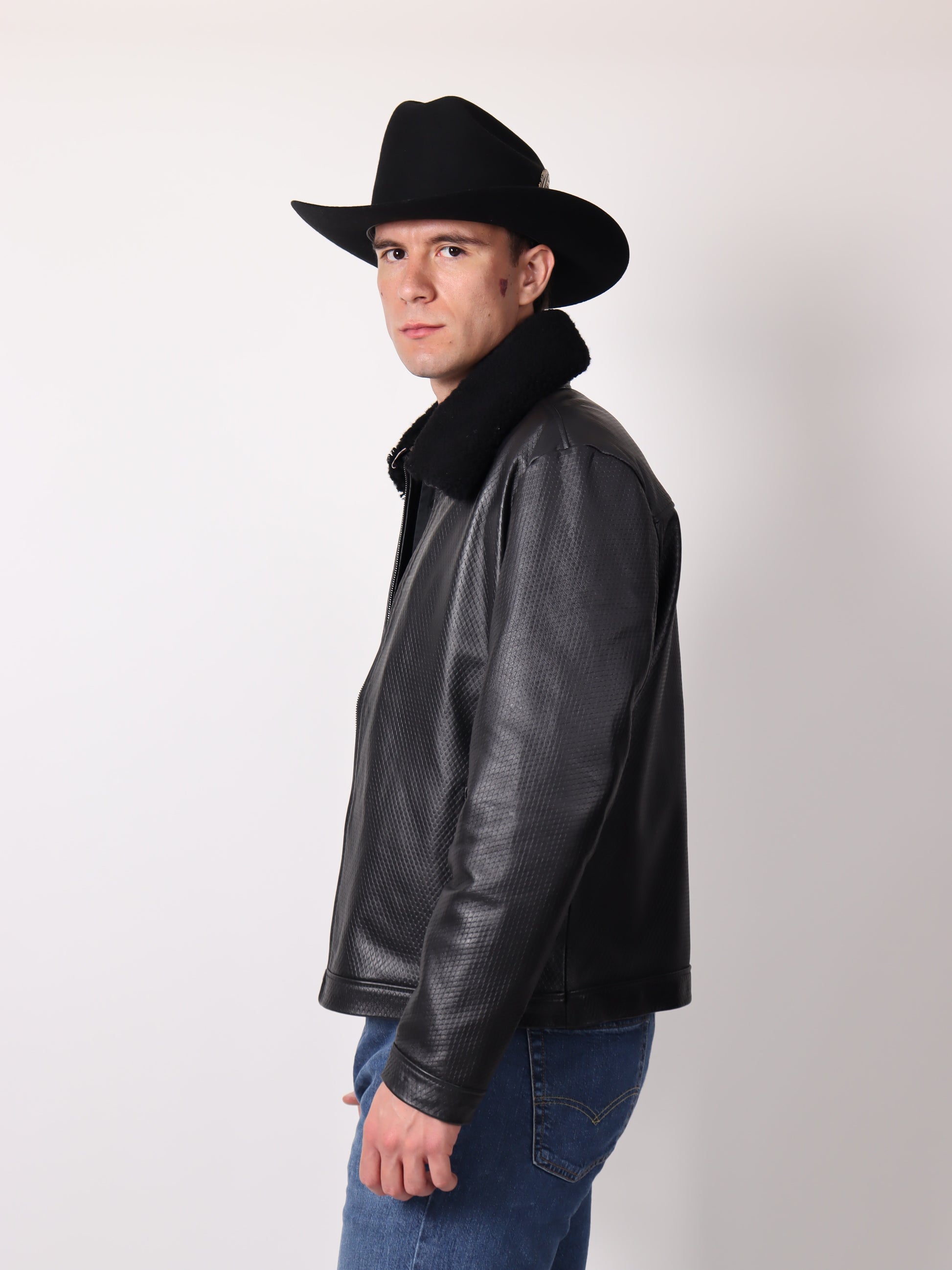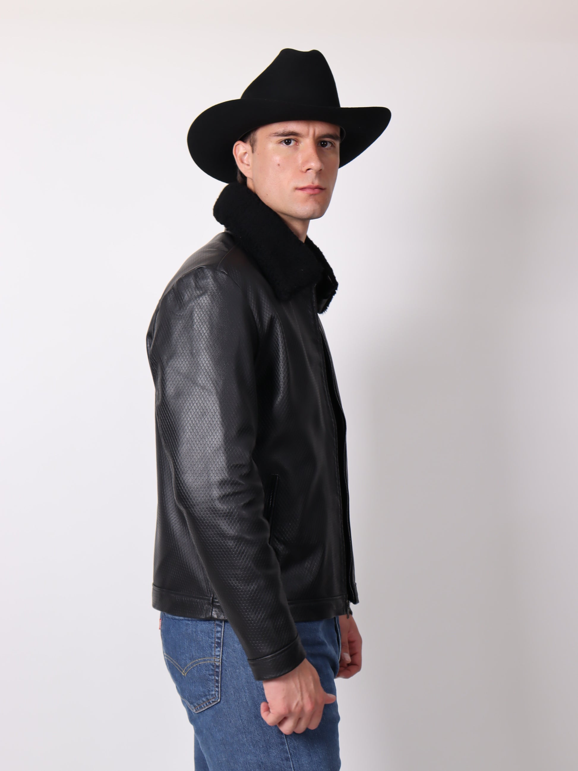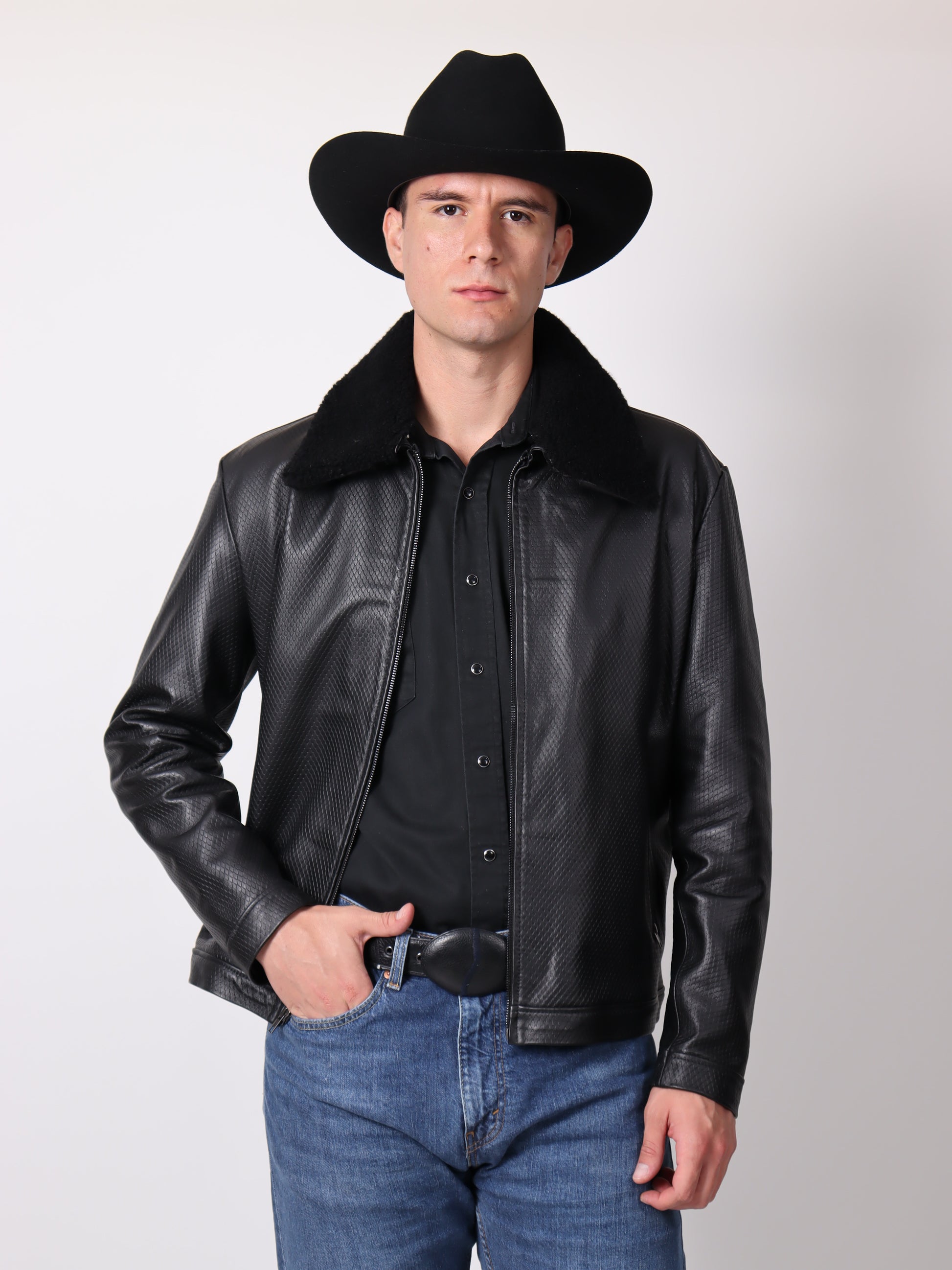 Chamarra Grabada con Cuello de Borrega Desmontable
